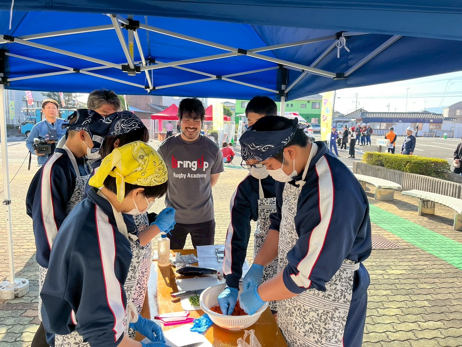 ラグビー元日本代表の菊谷 崇さん(株式会社Bring UP Athletic Sociiety)を筆頭に、吉冨中学校の野球部員、柔道部員の皆さんが自ら考えたレシピ、食材、手順で4種類のカレーを作り、町の皆さんにカレーライスを振舞いました👨🍳🍛